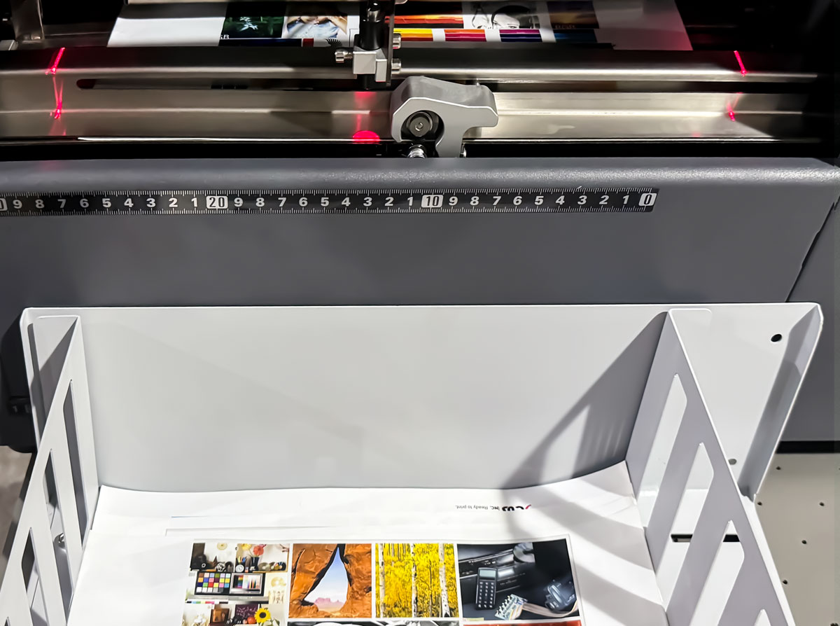 8. Roll-to-pieces media holder organizes the media after cutting.